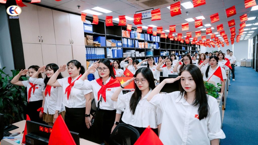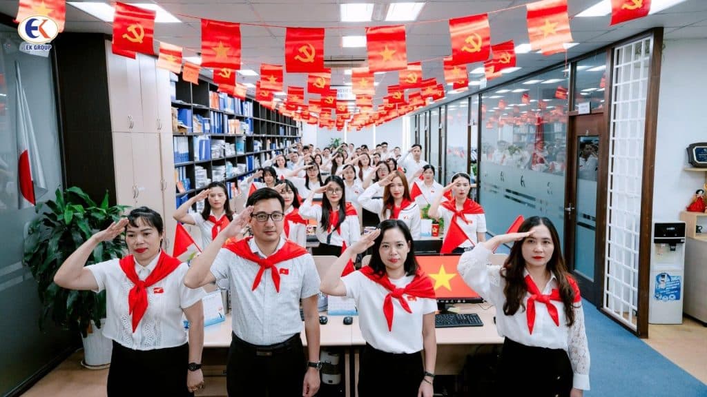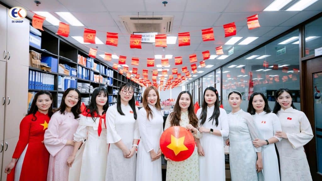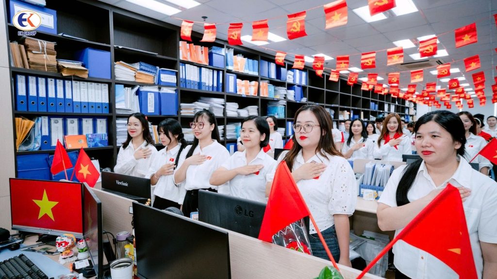 Ngay từ những ngày cuối tháng 8, tại trụ sở chính và các chi nhánh của EK GROUP đã được trang hoàng cờ hoa rực rỡ, tạo nên bầu không khí trang nghiêm và tràn đầy khí thế. Mỗi cán bộ nhân viên đều thể hiện niềm tự hào khi khoác trên mình màu áo truyền thống của doanh nghiệp, tham gia các hoạt động chào mừng với tinh thần hứng khởi và trách nhiệm.