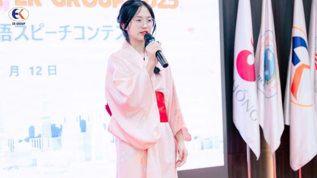 Trong không khí sôi nổi, các thí sinh đã thể hiện khả năng phát âm, diễn đạt và tư duy tiếng Nhật thông qua các bài hùng biện sáng tạo, giàu cảm xúc. Ban giám khảo – gồm các thầy cô khoa Tiếng Nhật và đại diện EK GROUP – đã đánh giá dựa trên các tiêu chí: nội dung, khả năng ngôn ngữ, tác phong trình bày và mức độ truyền cảm hứng.