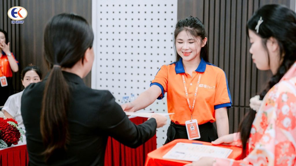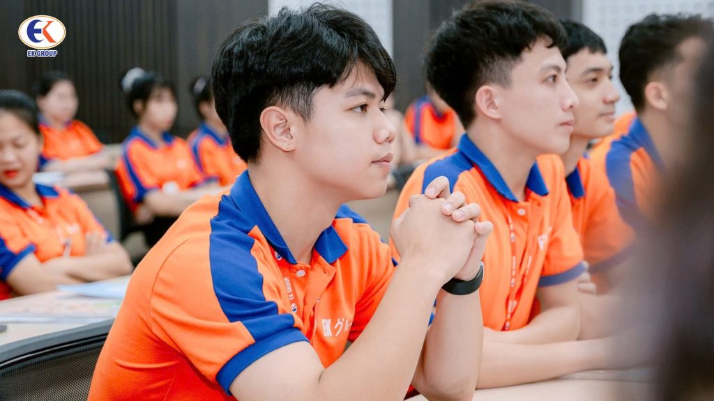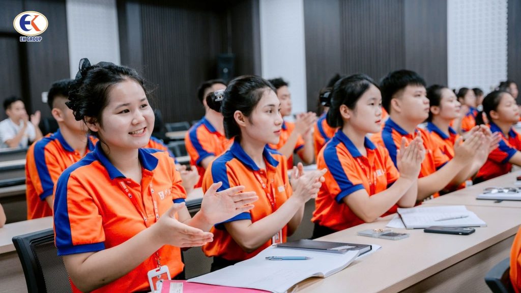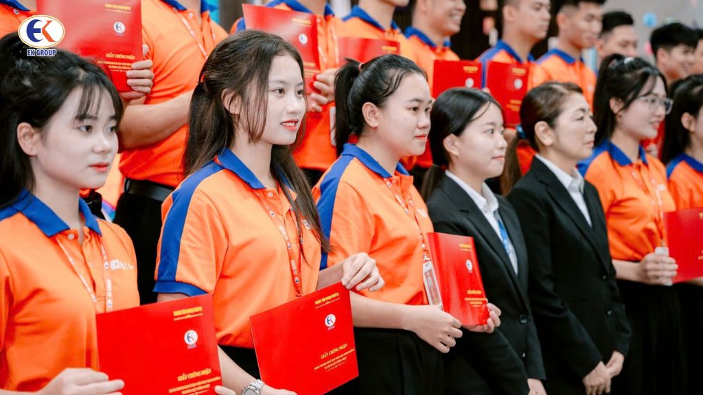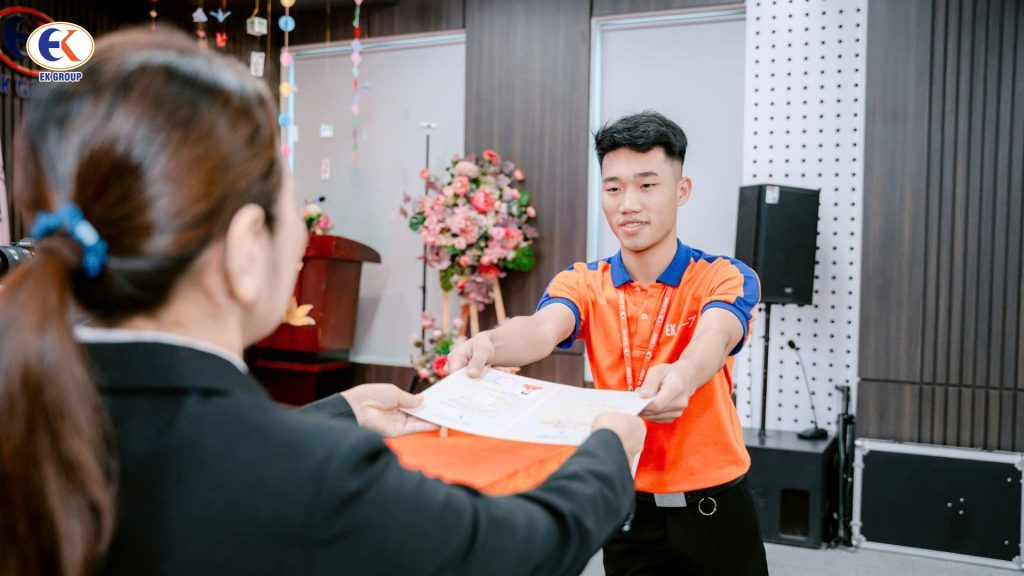 Trong không khí trang trọng và đầy cảm xúc, đại diện Ban Lãnh đạo EK GROUP đã gửi lời chúc mừng, động viên và trao giấy chứng nhận hoàn thành khoá đào tạo cho từng học viên. Đồng thời, các học viên cũng chia sẻ những cảm nghĩ chân thành, thể hiện lòng biết ơn với các thầy cô, cán bộ quản lý và gia đình – những người luôn đồng hành, hỗ trợ suốt thời gian học tập.