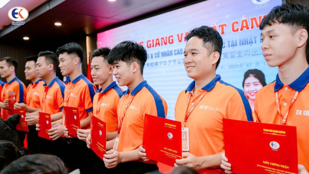 Ngày 17/7/2025, tại Trung tâm đào tạo EK Mai Lĩnh đã diễn ra lễ bế giảng và xuất cảnh cho 36 bạn thực tập sinh và cử nhân cao đẳng chuẩn bị lên đường sang Nhật Bản làm việc theo chương trình thực tập sinh kỹ năng.