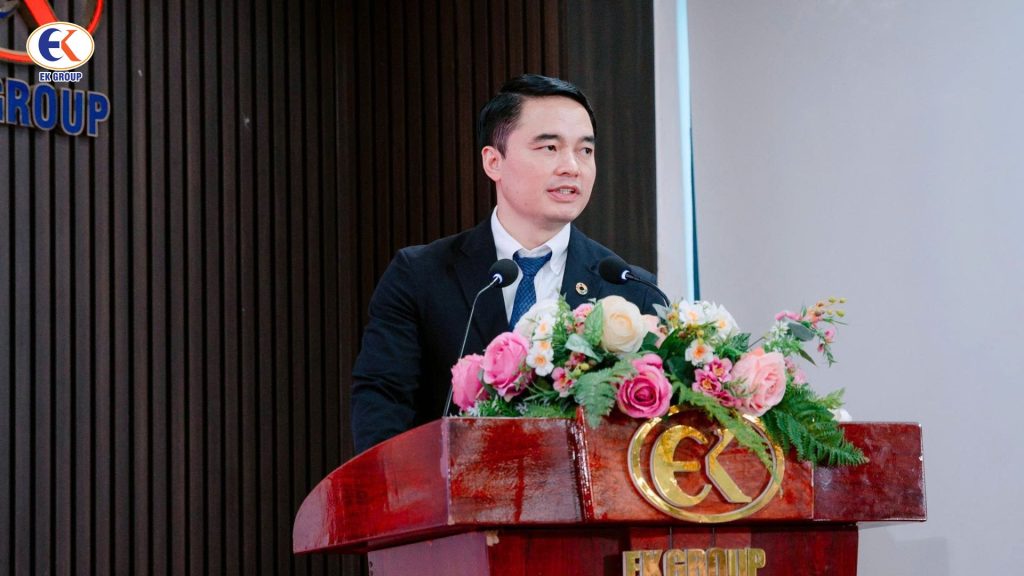 Phát biểu tại Lễ khai giảng, đại diện Ban lãnh đạo EK GROUP khẳng định cam kết đồng hành xuyên suốt cùng học viên từ giai đoạn đào tạo trong nước, học tập chương trình Cao đẳng, cho đến khi ổn định công việc tại Nhật Bản.