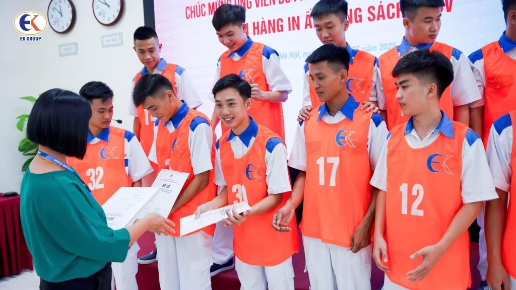 Tiếp nối thành công của buổi thi tuyển vòng 1, ngày 24/7/2025, EK GROUP tiếp tục tổ chức buổi thi tuyển vòng 2 đơn hàng in ấn – đóng sách dành cho 38 ứng viên nam đã vượt qua vòng 1.