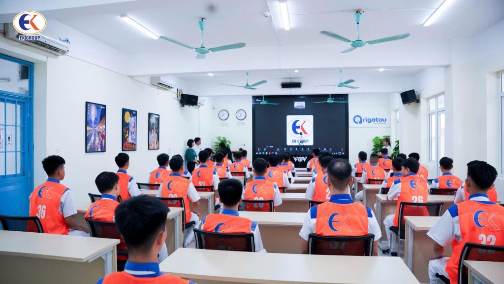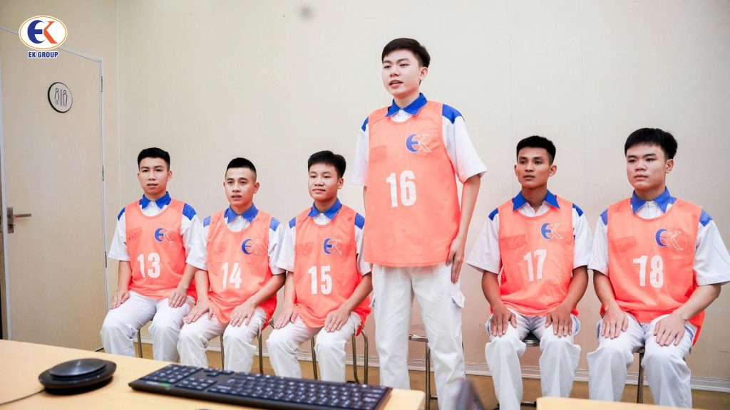 Trong vòng 1, các ứng viên đã thực hiện các nội dung thi bao gồm tính toán, trí nhớ, cộng dồn và test mù màu. Đến buổi thi tuyển vòng 2, 38 ứng viên sẽ tiếp tục phỏng vấn online với nghiệp đoàn và xí nghiệp thực tập sinh tại Nhật với sự tham gia trực tiếp của các cán bộ quan hệ quốc tế tại EK.