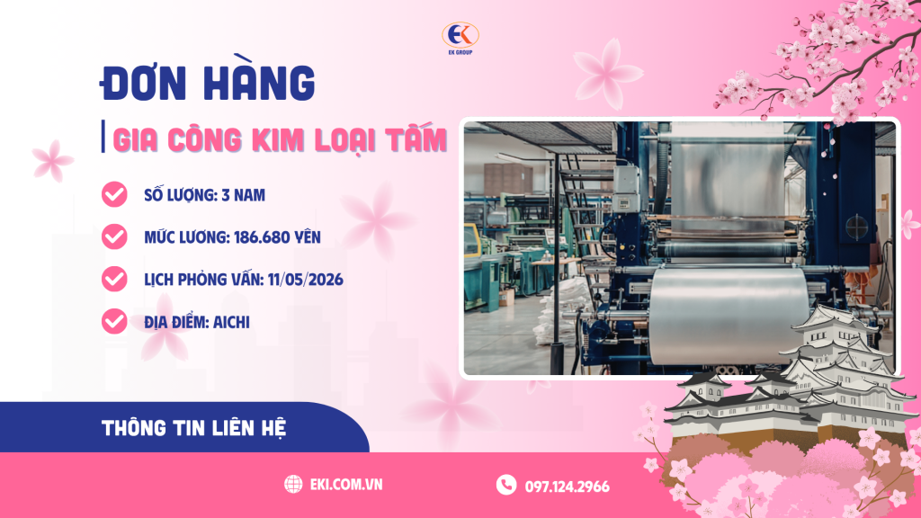 Aichi 186.680/ Tháng Tuyển 3 nam nhân viên đơn hàng gia công kim loại tấm làm việc tại Aichi Việc làm Nhật Bản Nhật Bản Gia công kim loại tấm Thực tập sinh Thực tập sinh kỹ năng cao đẳng